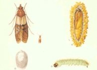 Erginin ön kanatlarının bir bölümü sarı, bir bölümü kırmızı ve koyu lekelidir, boyu 9 mm.dir. Larva kirli beyazdan pembemsi kreme kadar değişen renklere sahiptir.