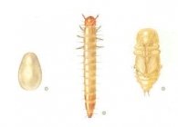 Ergin parlak kırmızımsı esmer renkli, 3-4 mm. boyundadır. Dişi gıda ortamına 100-200 yumurta bırakır, gelişme süresi 6-8 haftadır.